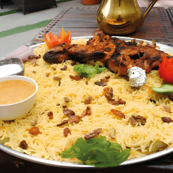 Experience the authentic taste of the Middle East with our Chicken Mandi. Tender chicken marinated in a blend of aromatic spices is slow-cooked to perfection, layered over fragrant basmati rice, and infused with rich flavors. Served with a side of tangy sauce, each bite offers a harmonious balance of savory, smoky, and mildly spiced notes — a truly satisfying and flavorful meal