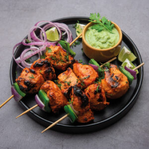 Succulent chicken pieces marinated in a special I blend of chicken masala and spices, cooked to perfection, resulting in a dish bursting with flavor.